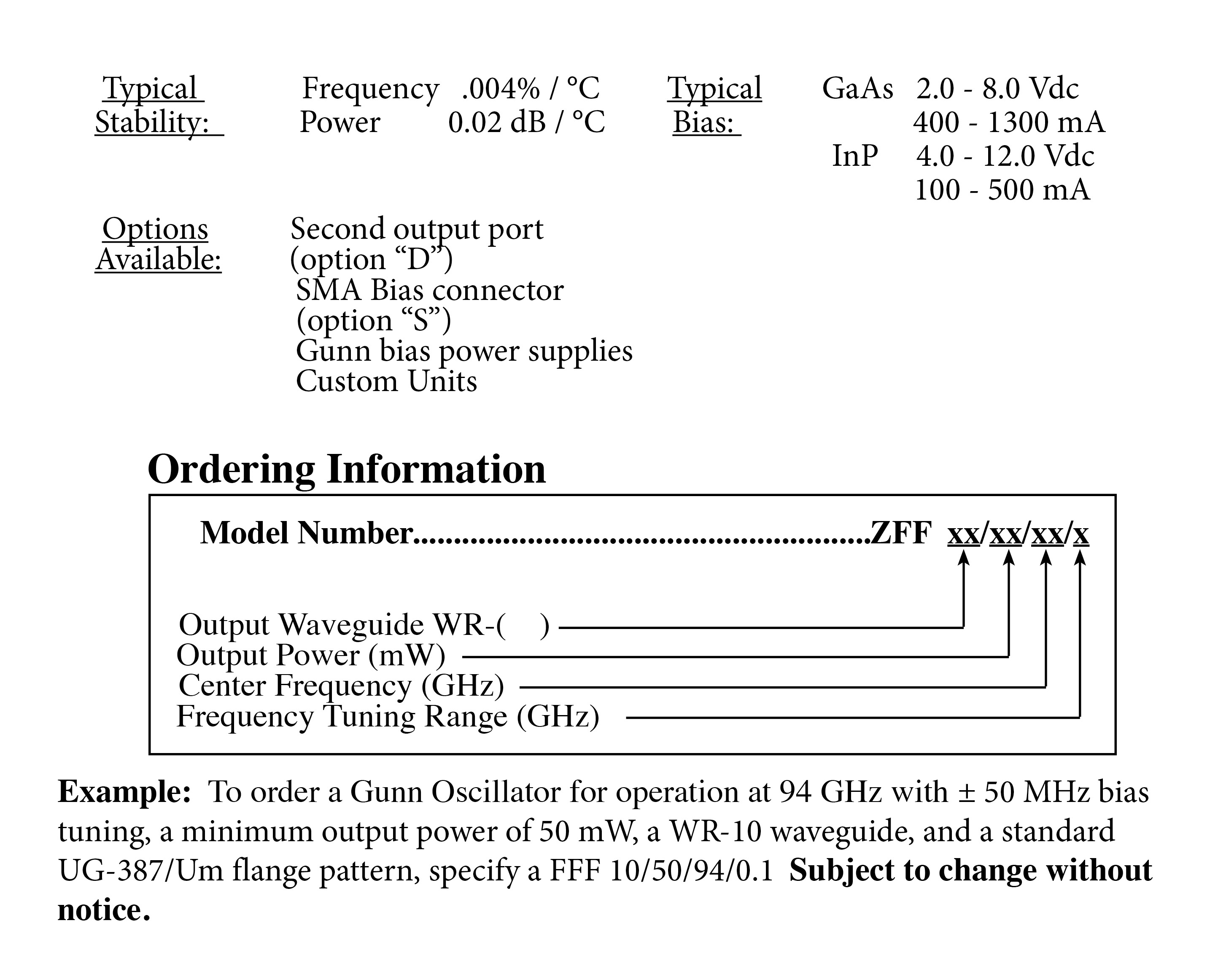 Fixed Frequency Gunn Oscillator (ZFF Series)