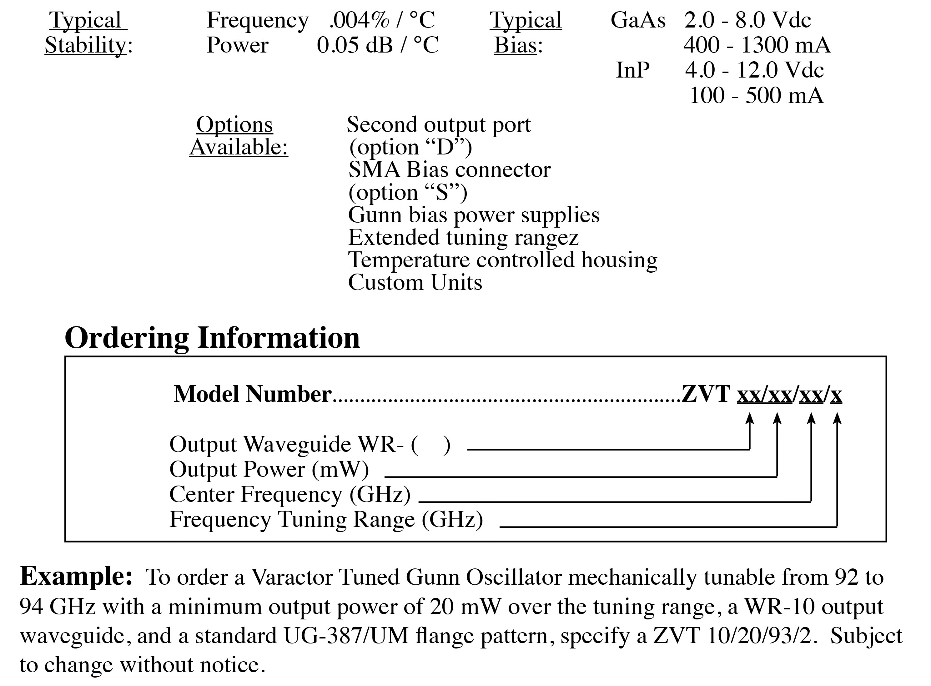 Varactor Tuned Gunn Oscillators (ZVT Series)